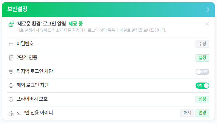 만일 실수로라도 ID와 PW를 입력 후 로그인 버튼을 누르신 경우, 즉시 네이버(NAVER.com)에 로그인 후 개인정보 수정을 통해 패스워드를 변경하여 주시기 바랍니다. 더 안전한 사용을 위해 비밀번호 변경 후 로그인 전용 아이디 설정 및 2차 인증(2FA) 활성화, 해외 로그인 차단 등의 보안 설정을 권장합니다.