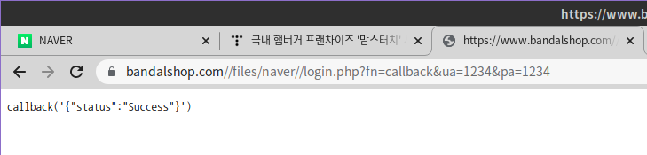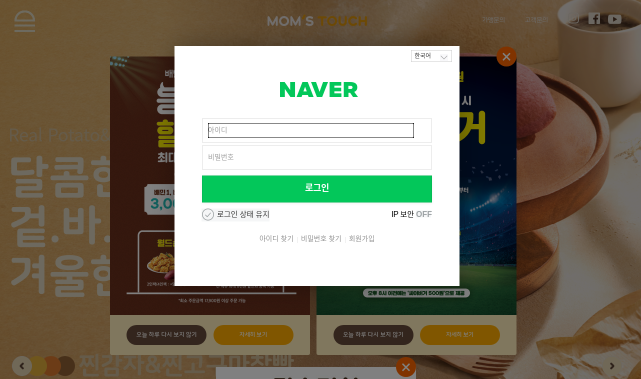 공식 사이트(momstouch.co.kr)에 접속 시 팝업 창으로 국내 포털 사이트 네이버(NAVER)의 로그인 창이 발생합니다. 네이버의 로그인 주소는 'nid.naver.com'지만, 팝업의 로그인 창은 'https://www.bandalshop.com//files/naver//login.php'로 확인됩니다. (계속해서 바뀌는 중)
