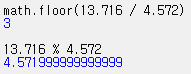 아래의 결과는 틀렸습니다. 13.716을 4.572로 나눈 나머지는 0이 되어야 하지만, 그렇지 않게 나옵니다.