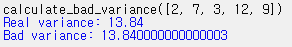 우선, 이 잘못된 알고리즘으로 작은 숫자 5개의 분산을 계산해 봅시다. 결과가 꽤 괜찮아 보이네요: