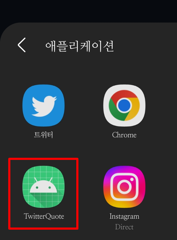 (갤럭시 기준) 더보기를 누른 후 우측 상단의 편집을 눌러 TwitterQuote 앱을 위로 옮기면 더 간편하게 쓸 수 있습니다.