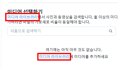 5. 하단의 '미디어 선택하기'의 파란색 미디어 라이브러리 클릭