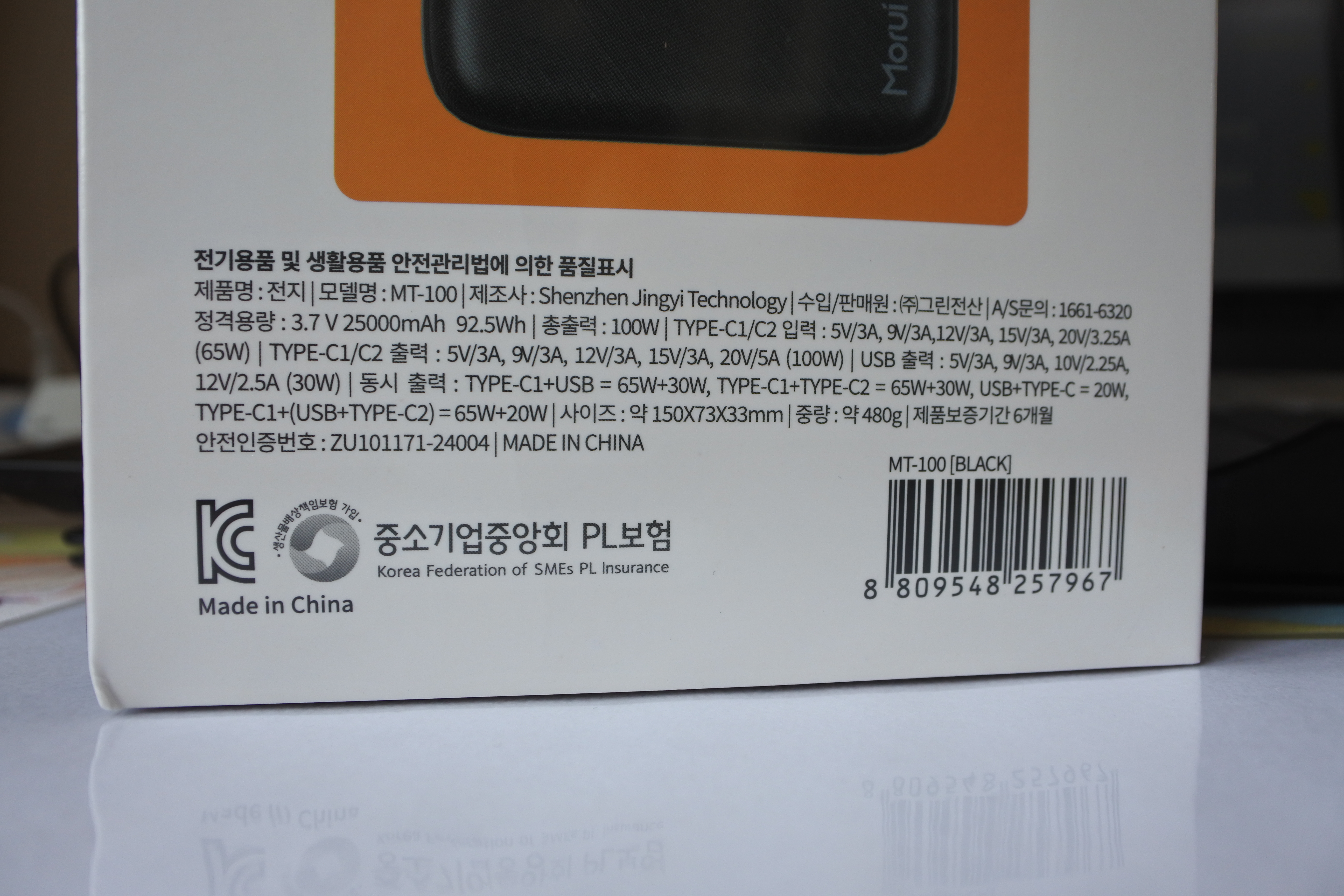 정격 용량은 3.7V 25,000mAh에 앞서 소개드린대로 92.5Wh라고 되어 있습니다.