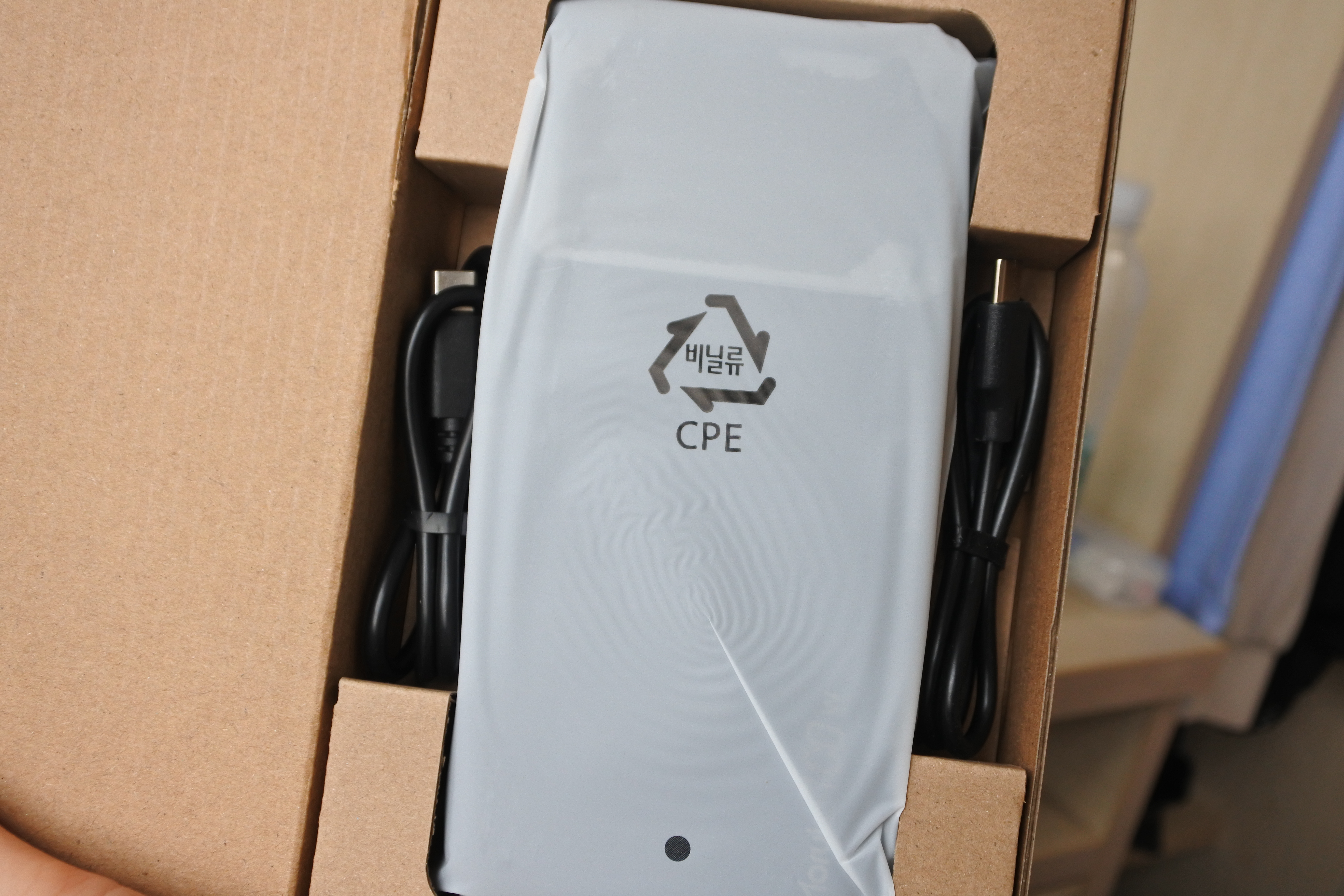 박스를 열어보면 가운데 본제품이 있고, 양 옆으로 케이블이 동봉되어 있습니다.