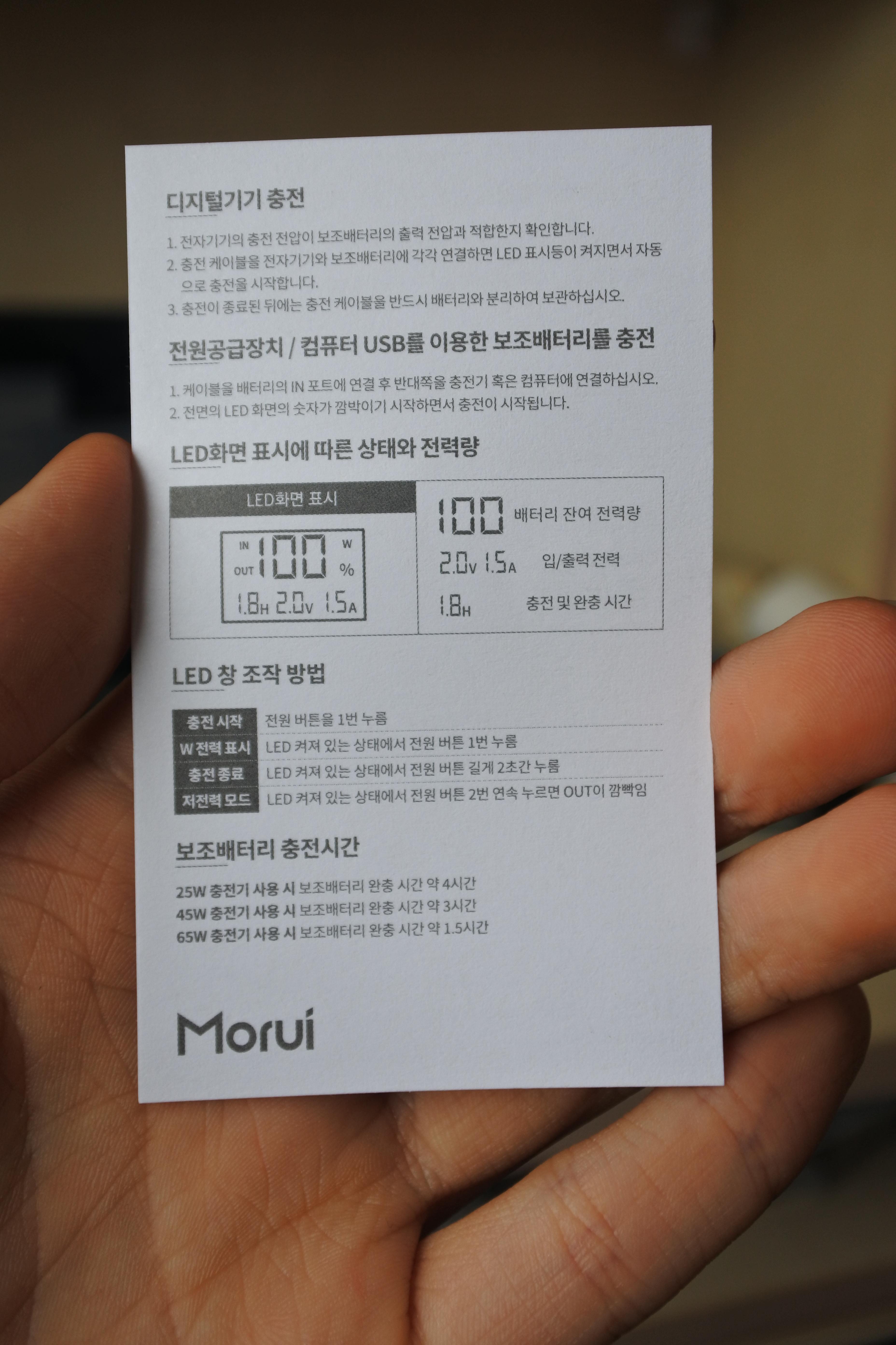 모루이 PD100W 25000mAh PPS 초고속충전2.0 대용량 보조배터리 MT-100 드론 노트북충전 기내반입 캠핑 해