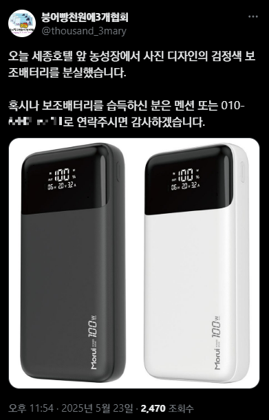 그러다 작년 11월에 구매하여 잘 쓰고 있던 제 보조배터리를 잃어버렸습니다.