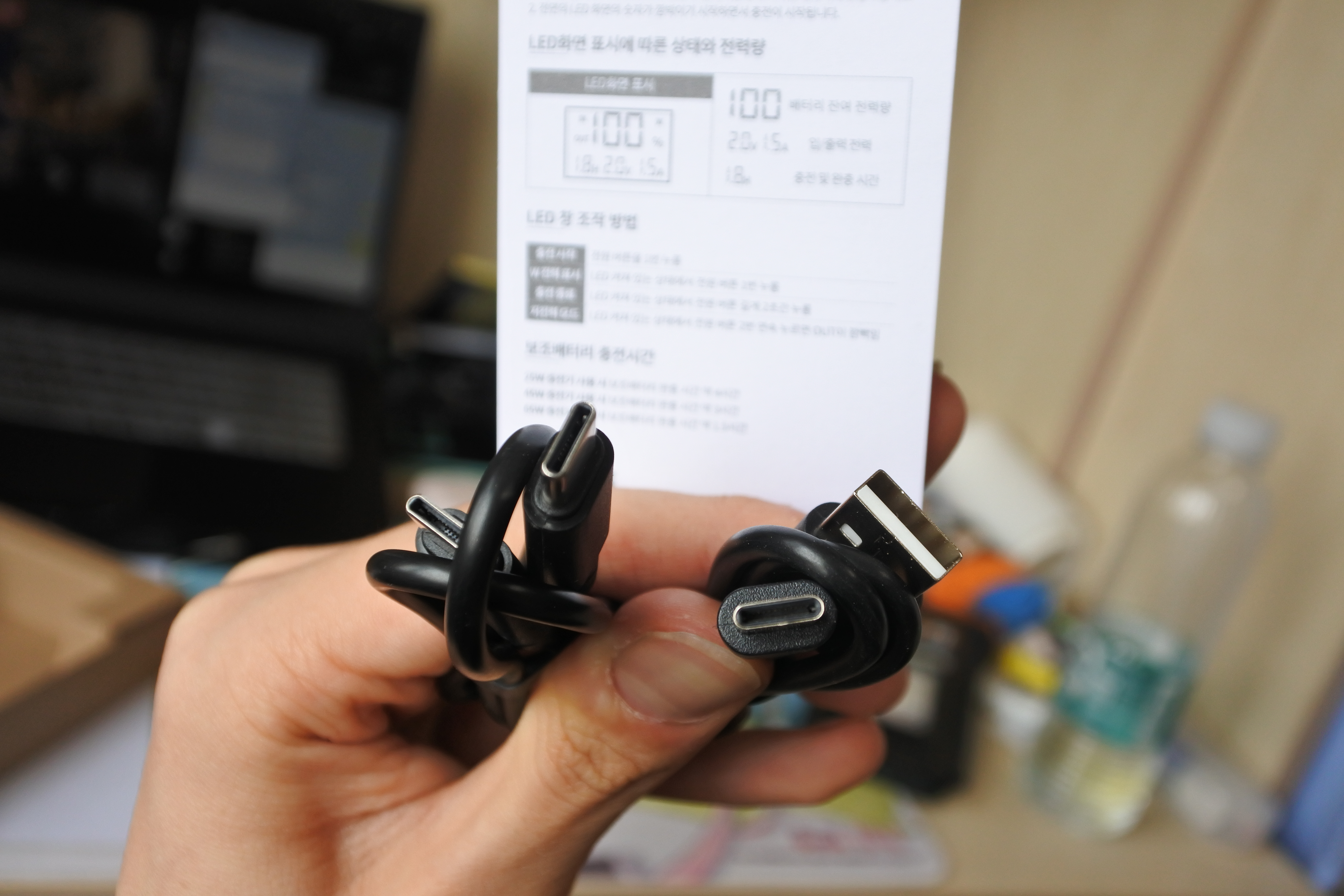 각각 100W(20V 5A) 출력을 지원하는 Type-C to C 케이블이 있고,