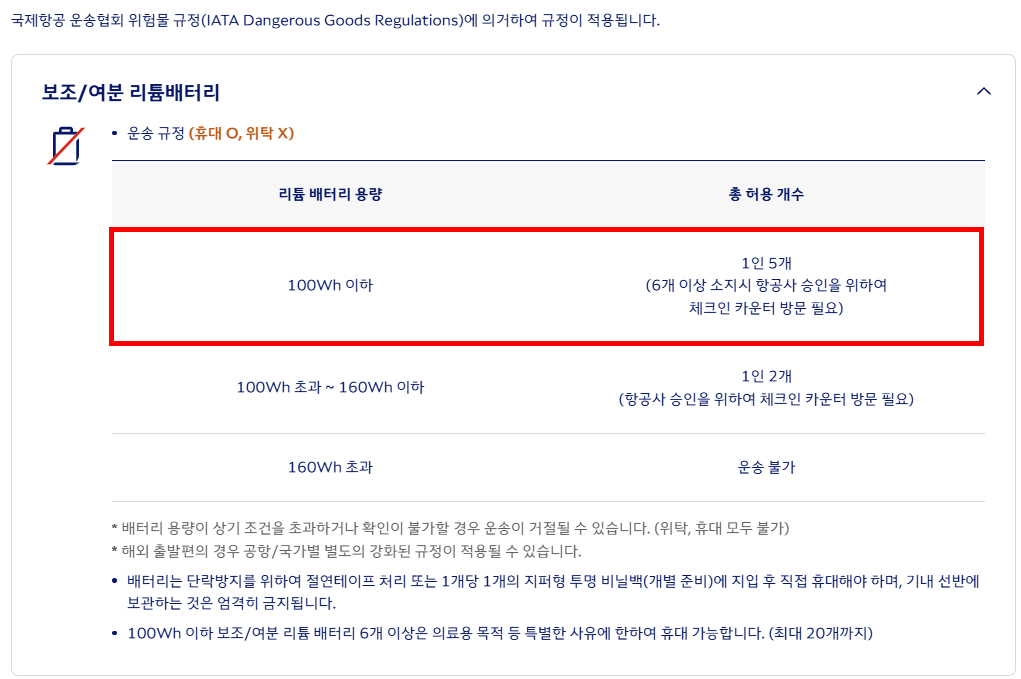 비행기 기내 휴대가 가능한 보조배터리의 기준에 따르면,
