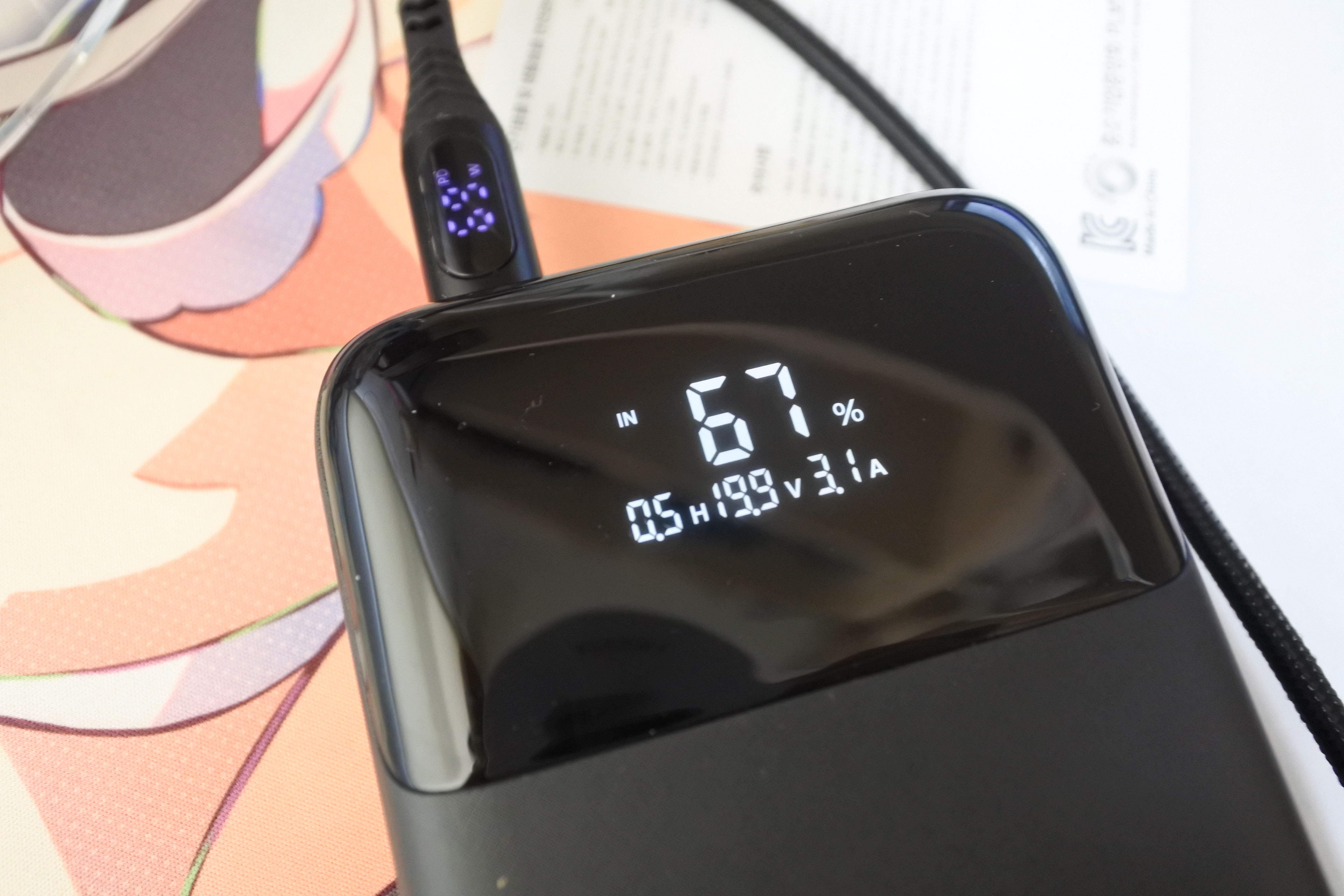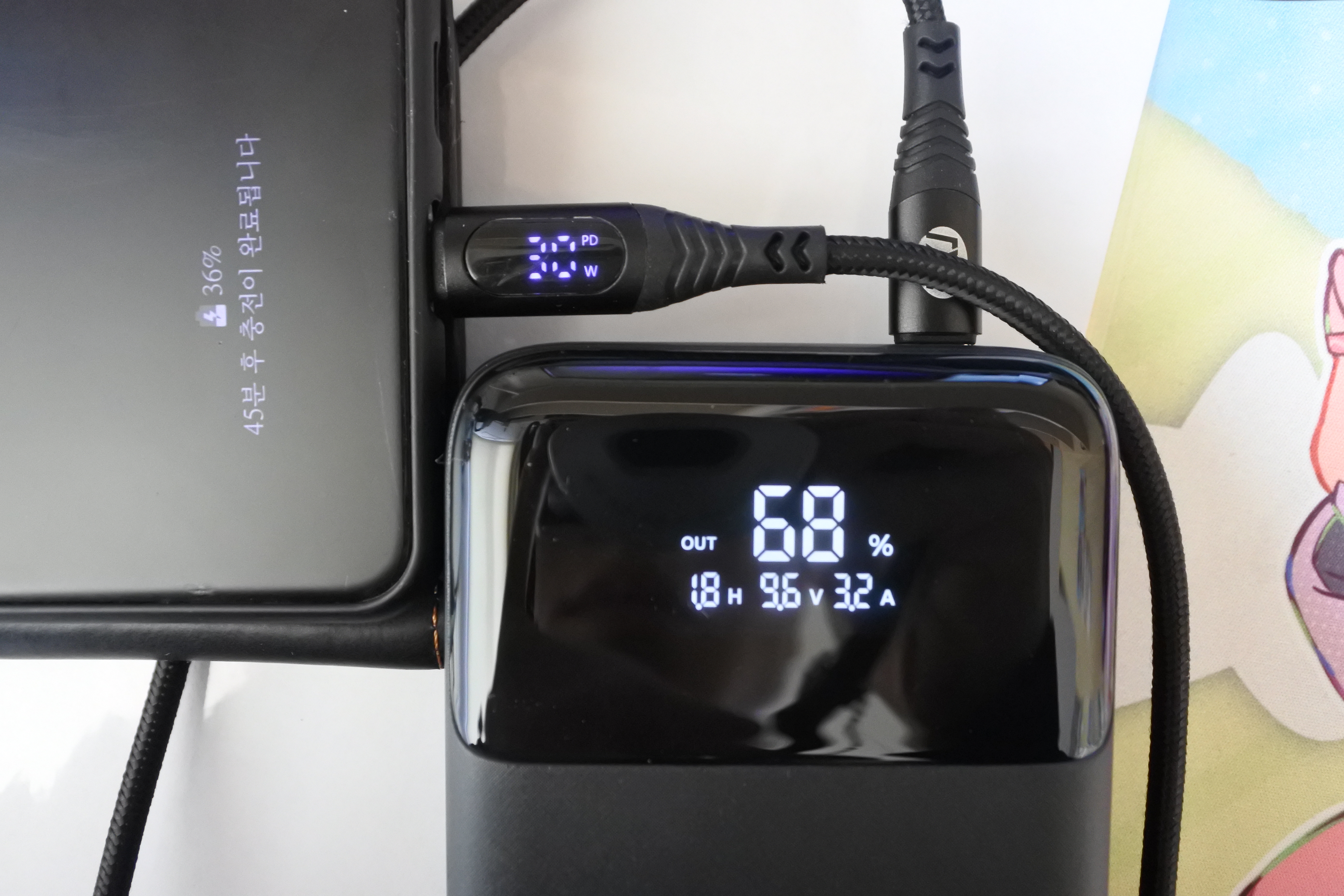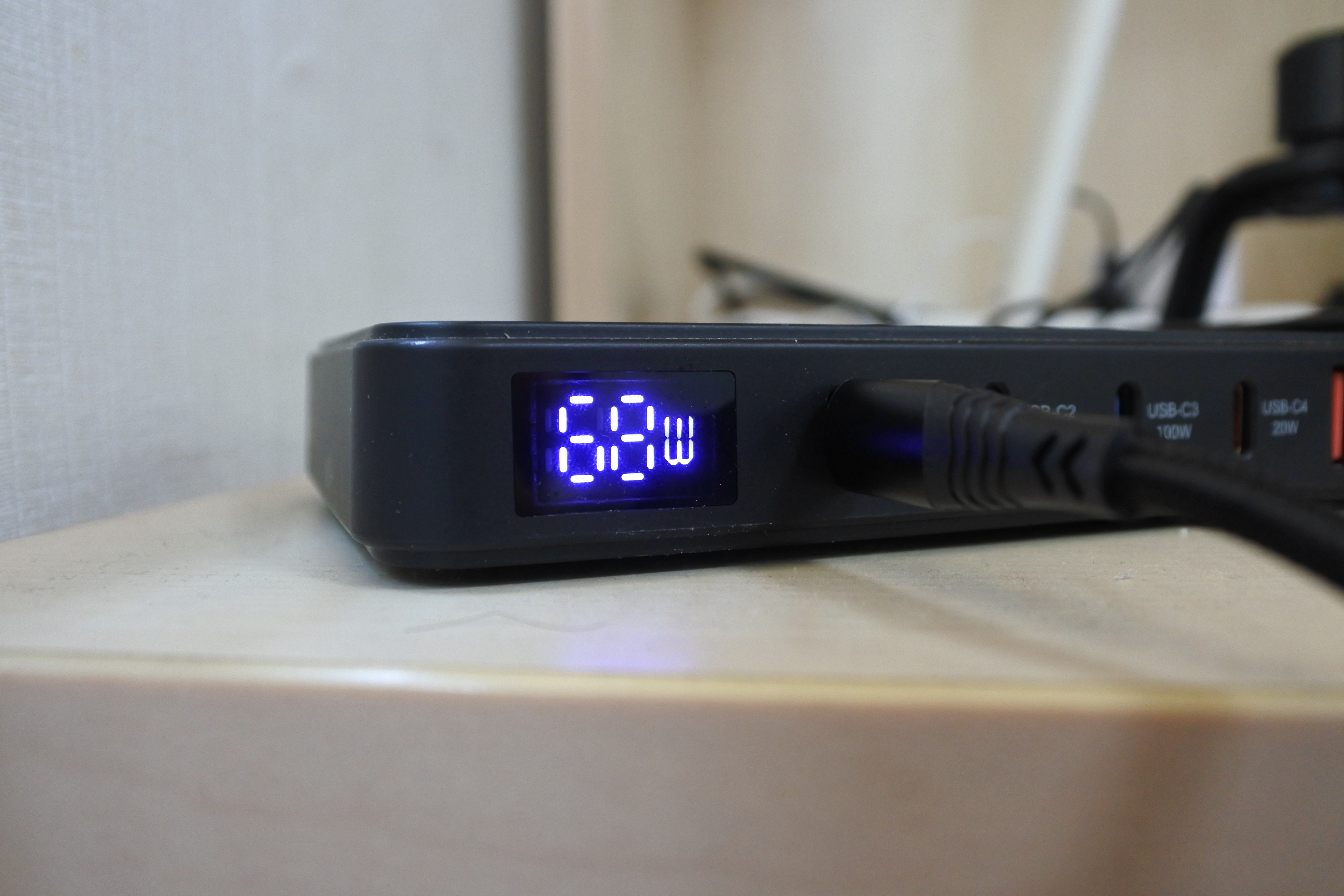 70W를 넘지는 않으나 대략 65~68W 사이로 입력을 받는 보조배터리입니다.