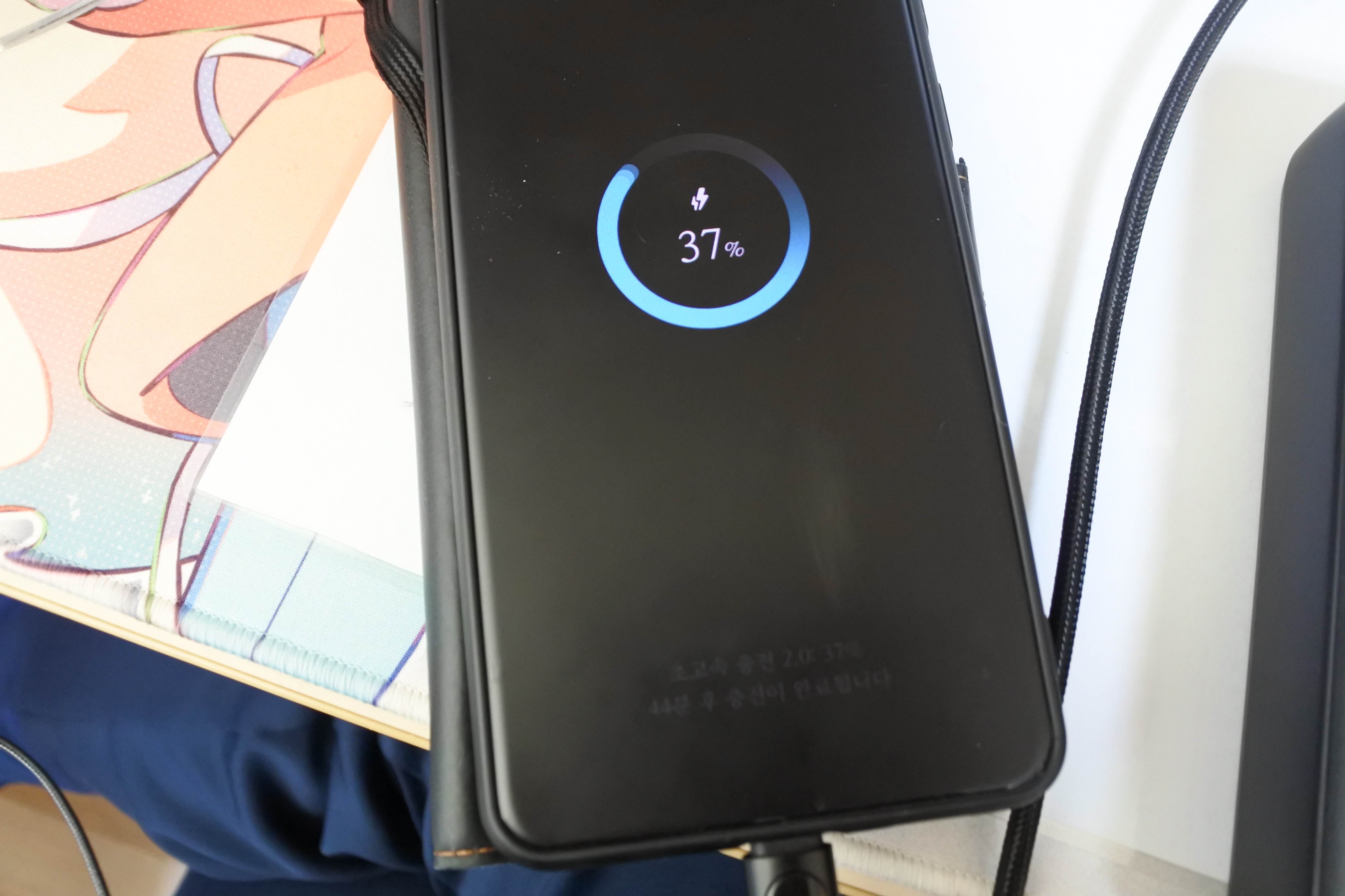 보조배터리로 충전을 시작하니 '초고속 충전 2.0'이라고 표시된 정보가 눈에 띕니다.