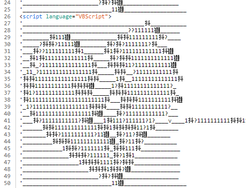 사진과 같이 VBScript로 작성된 파일임을 확인할 수 있습니다. 코드 중간중간에 알 수 없는 무의미한 코드가 다량 포함되어있어, 1438의 줄로 코드 자체가 매우 길게 써져있습니다. 내부 코드는 다음과 같습니다. [ 분석 목적만 허용 ]